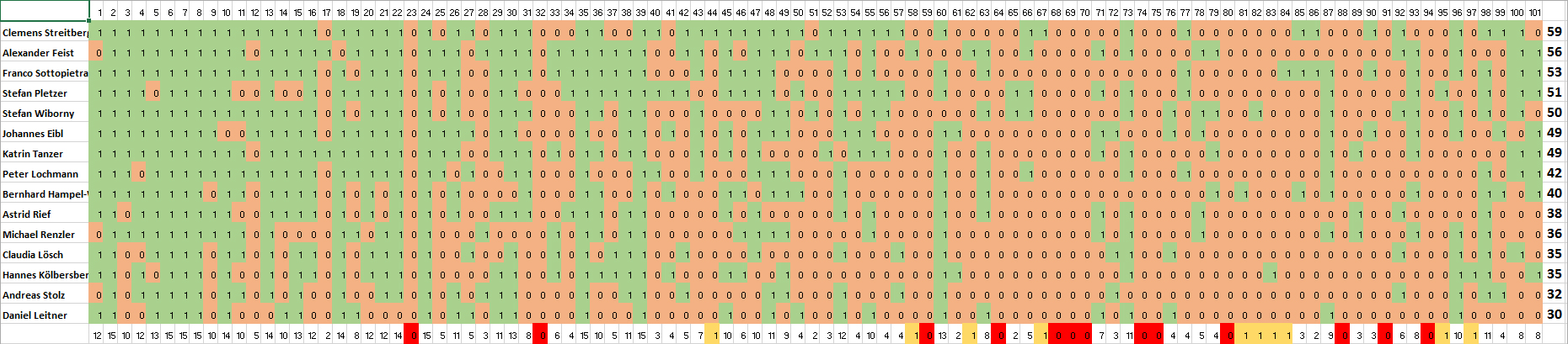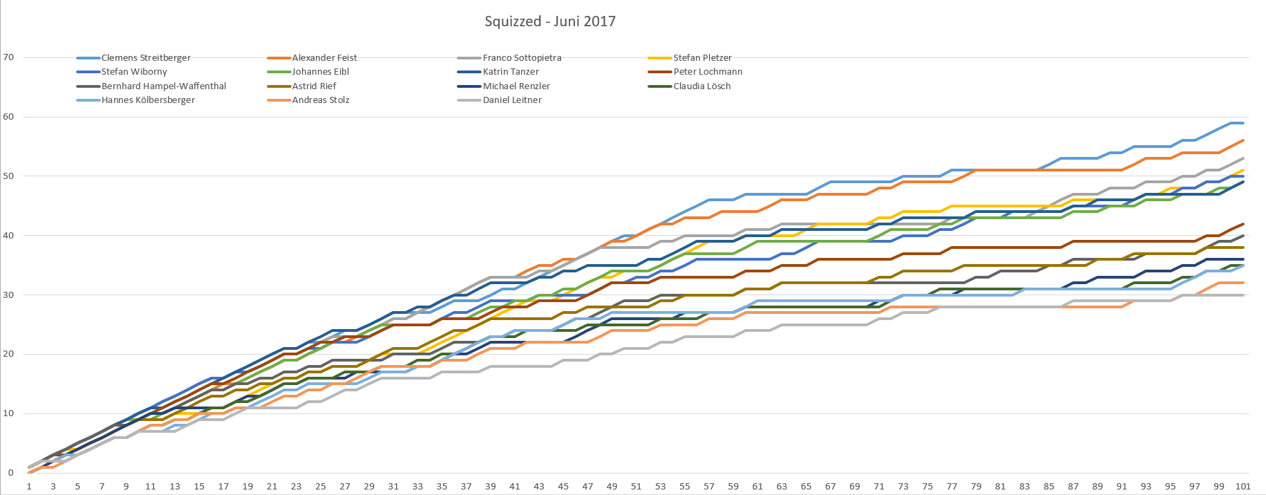 Mit 59 Punkten verwies Clemens die beiden in Wien spielenden Alex Feist (56) und Franco Sottopietra (53) auf die Plätze zwei und drei. 15 Spieler bedeuten einen neuen Teilnehmerrekord, weshalb Fragenautor Dean Kotiga einen Gruß an die österreichischen Spieler ausrichtet: "It's so nice to see numbers growing more and more in Austria, it's nice the quiz are getting recognized and that the people are loving it more and more."