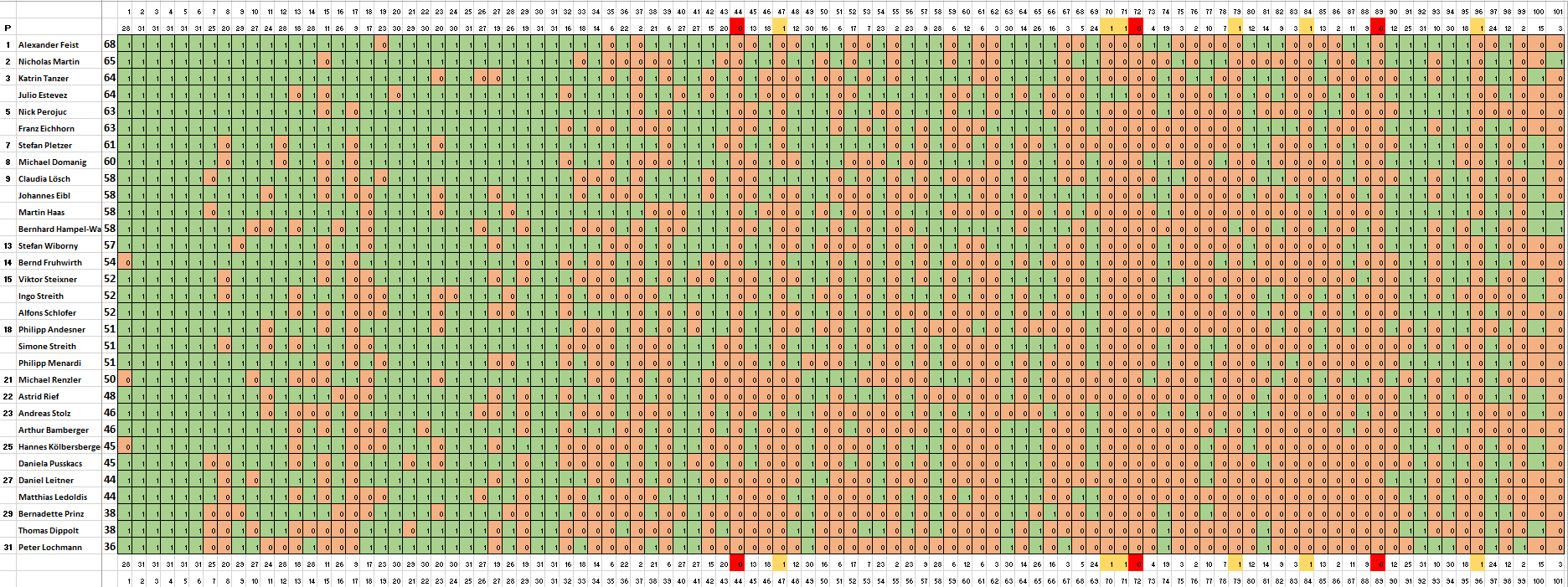 In der Österreichischen Quiz-Rangliste hat Alex Feist in der Vorwoche die Spitzenposition von Franco Sottopietra nach 33 Wochen zurückerobert. Claudia Lösch behält die Führung im Race 2019.
