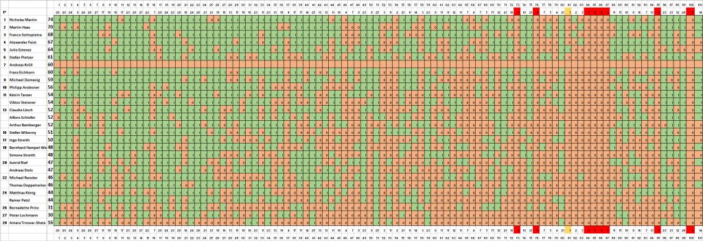 74 Punkte bedeuten in einem gewohnt erlesenen Feld an fast 300 Spielern, darunter viele internationale Spitzenquizzer, Platz 23 für den Österreich-internen Sieger.