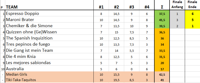 Für das Buzzerfinale des TRIBAUN-Quiz 2.0: EASY WIN! qualifizierten sich diesmal die Teams Maronibrater, Chemiker & die Simone und Espresso Doppio. Der Sieg ging an Espresso Doppio.