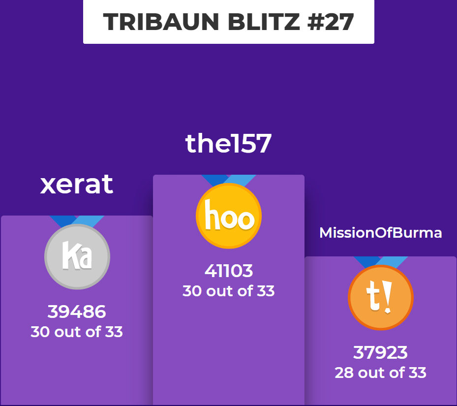 * Noch bis Sonntag (26. April) könnt ihr die aktuelle Ausgabe von "In 80 Fragen um die Welt" spielen. 80 Fragen, die Antwort ist jeweils ein Land dieser Welt, doch jedes Land kann nur ein einziges Mal als Antwort vorkommen - wenn überhaupt. Ebenfalls noch bis Sonntag könnt ihr an den Hot 100 teilnehmen, dem monatlichen 100-Fragen-Quiz der International Quizzing Association.